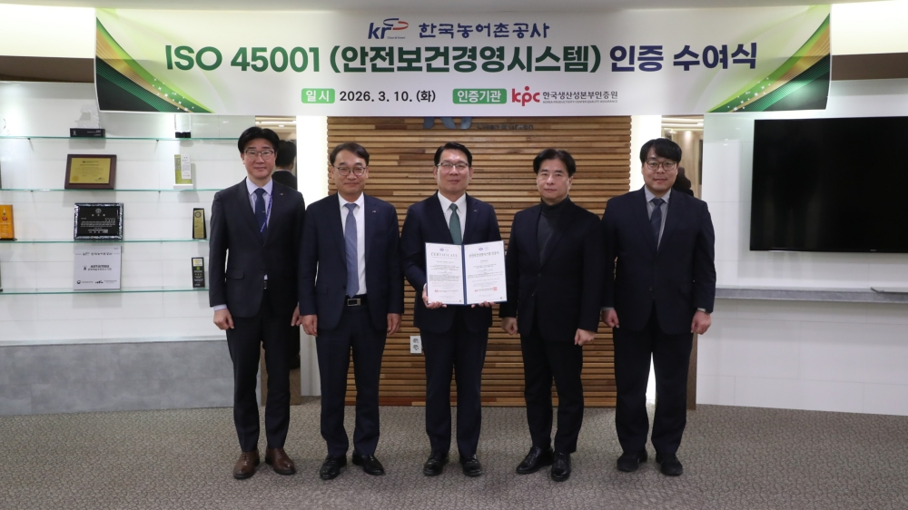 한국농어촌공사(이하'공사')가 '국제표준 안전보건경영시스템(ISO 45001)' 인증을 취득했다고 11일 밝혔다.