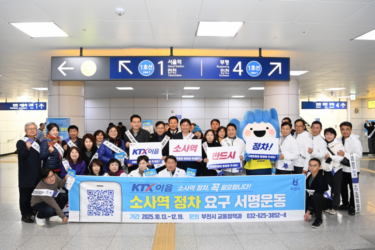 조용익 부천시장은 "시민들의 뜻이 모여 사업 추진에 의미 있는 진전을 이끌어냈다"며 "관계기관과 긴밀히 협의해 KTX-이음 소사역 정차를 반드시 실현하고 시민 교통 편의와 지역 성장 기반을 함께 높이겠다"고 말했다.