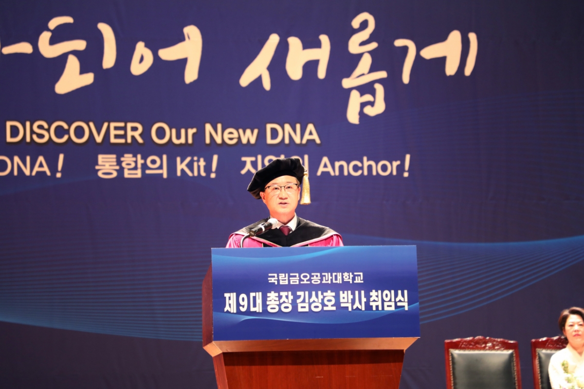 국립금오공과대학교가 지난 11일 본관 대강당에서 '제9대 총장 김상호 박사 취임식'을 개최했다고 12일 밝혔다. 김 신임 총장의 임기는 2030년 1월29일까지 4년이다.