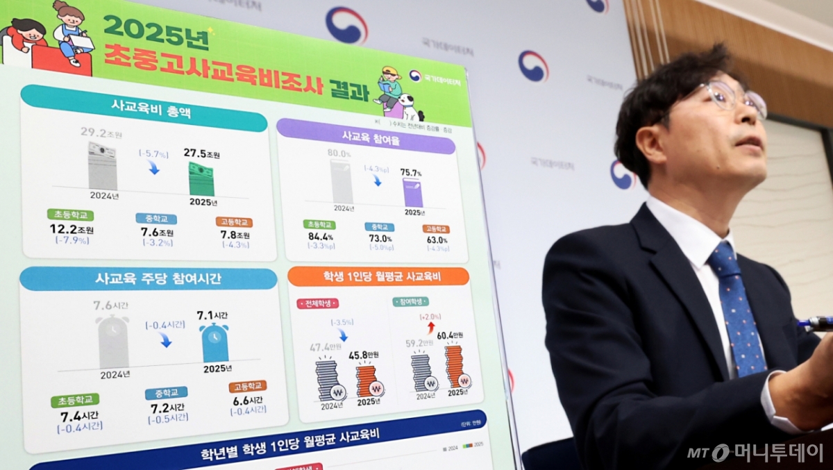 특히 "사교육 규모는 줄어든 것처럼 보이지만 실제로 사교육에 참여하는 학생들의 부담은 여전히 높은 수준"이라며 "입시가 가까워질수록 사교육비 부담이 확대되는 구조가 유지되고 있다"고 강조했다.
