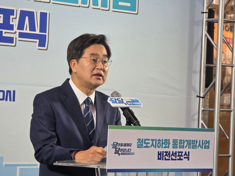 이날 김 지사는 민생경제 현장투어 시즌2 '달라질 때까지 달려갑니다' 일정으로 안양시와 '철도지하화 통합개발사업 비전선포식'을 열어 "지도에는 있지만 쓸 수 없었던 땅을 도민들께 돌려드리는 원대한 비전을 발표한다"면서 "철도를 지하로 내려 더 빠르고 편리하게 이용하도록 하고, 지상 공간은 온전히 도민들께 돌려드리겠다"고 밝혔다.
