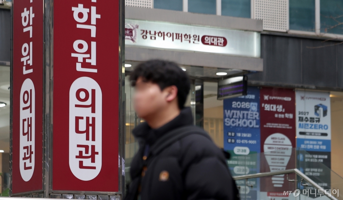 ![[서울=뉴시스] 김선웅 기자 = 2026학년도 대학 정시모집 선발 인원이 1만명 가까이 감소한 반면 지원 건수는 증가한 것으로 나타나고 의과대학 정원 확대, 지역의사제 도입 등 영향으로 올해 N수생 규모가 역대 최대 수준에 이를 것이라는 전망이 나오고 있다. 사진은 11일 서울 강남구 소재 학원 의대관의 모습. 2026.02.11. mangusta@newsis.com /사진=김선웅](https://thumb.mt.co.kr/cdn-cgi/image/f=avif/21/2026/03/2026031315050663940_1.jpg)