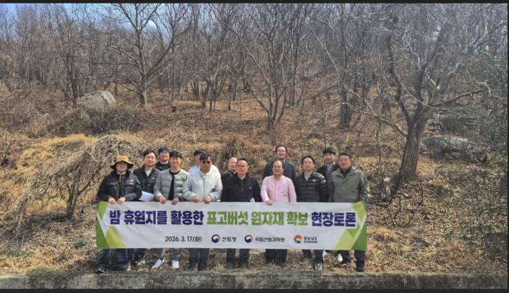 산림청은 지난 17일 경남 산청군 단성면 밤 재배 휴원지에서 국립산림과학원, 경상남도, 원목생산업, 목재파쇄업 등 관계자들이 참석한 가운데 '경남지역 밤 재배 휴원지를 활용한 표고버섯 원자재 확보 방안 마련 현장토론회'를 개최했다고 18일 밝혔다.