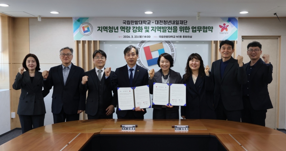 국립한밭대학교가 23일 대학본부 중회의실에서 대전청년내일재단과 지역 청년 역량 강화 및 지역 발전을 위한 업무협약을 체결했다.