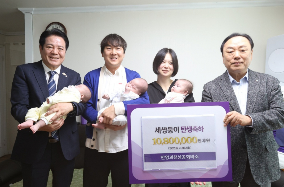 민간 지원도 이어진다. 안양과천상공회의소는 각 가정에 3년간 매월 30만원씩 총 1080만원의 후원금을 지원하기로 했다. 지방정부와 지역 경제계가 함께 출산 장려에 나선 사례다.