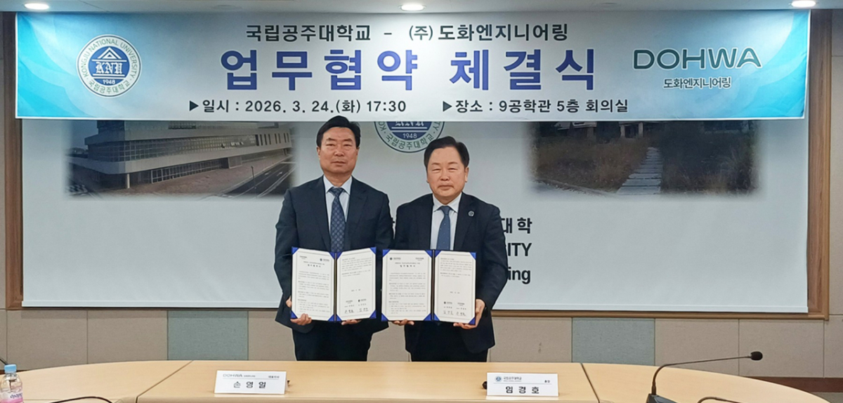 국립공주대학교가 지난 24일 천안캠퍼스 9공학관에서 ㈜도화엔지니어링과 AI 기반 조직 혁신 및 AI 인재 양성을 위한 업무협약(MOU)을 체결했다고 26일 밝혔다.