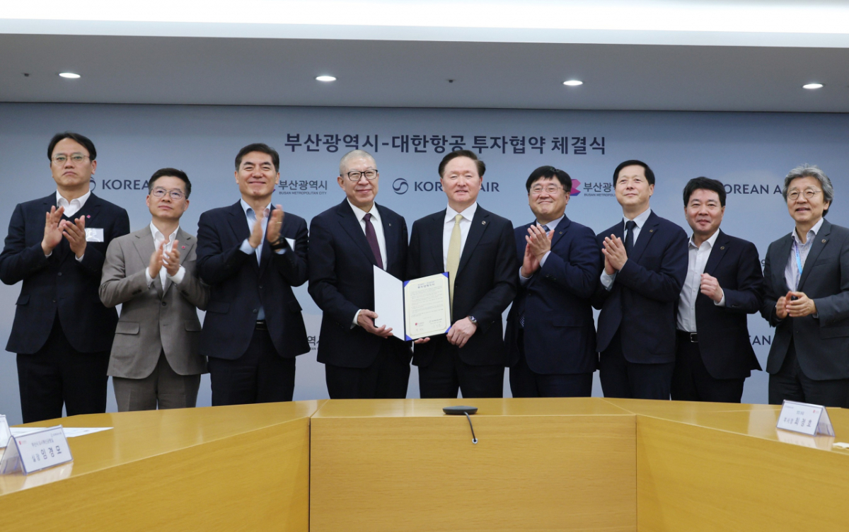 이날 박형준 부산시장과 우기홍 대한항공 대표이사 부회장이 참석해 양해각서에 서명했다.