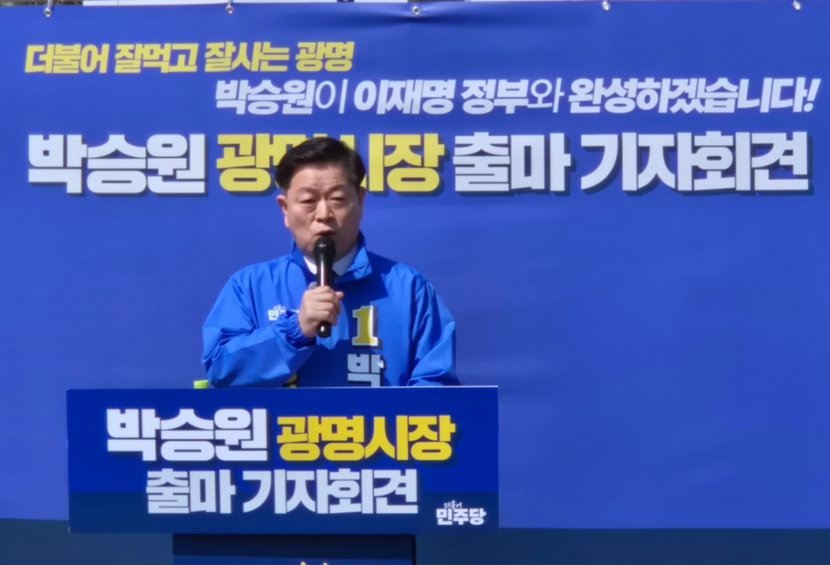 박 시장은 2일 광명시청 잔디광장에서 제9회 전국동시지방선거 출마를 선언하고 "오직 광명을 위해, 더 잘 사는 광명을 위해 다시 뛰겠다"며 3선 의지를 밝혔다.