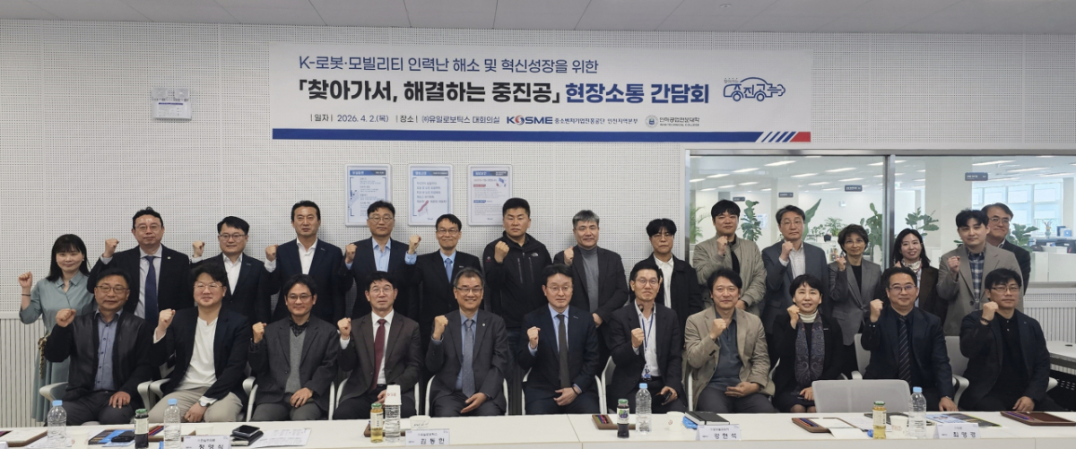 이날 행사는 K로봇·모빌리티 산업의 인력 미스매치 등 현장 목소리를 청취하고 지역 대학과 기관이 공동 해결 방안을 모색하기 위해 마련됐다. 김성찬 인하공전 총장, 이창섭 중진공 기획관리이사, 김동헌 유일로보틱스 대표이사와 로봇·모빌리티 분야 중소벤처기업 관계자들이 참석했다.