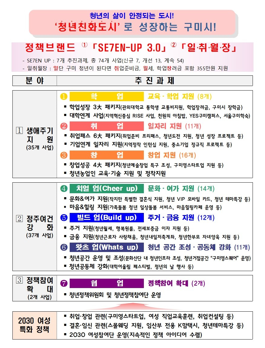 '구미영스타트업'을 통한 여성 창업 지원, 취업 컨설팅, 임산부 전용 K맘 택시 운영 등 생애 단계별 지원에 이어 '작지만 특별한 결혼식' 지원(최대 300만원)과 스몰웨딩 상담소 운영으로 결혼 부담도 낮춘다.