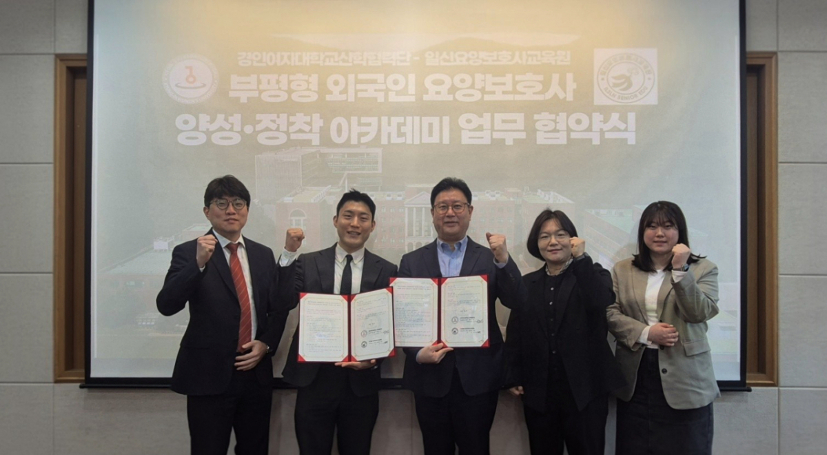 경인여자대학교 산학협력단이 지난 1일 인천 부평구 상생일자리 사업인 '부평형 외국인 요양보호사 양성·정착 아카데미'의 성공적인 운영을 위해 인천일신요양보호사교육원과 업무협약을 체결했다고 7일 밝혔다.