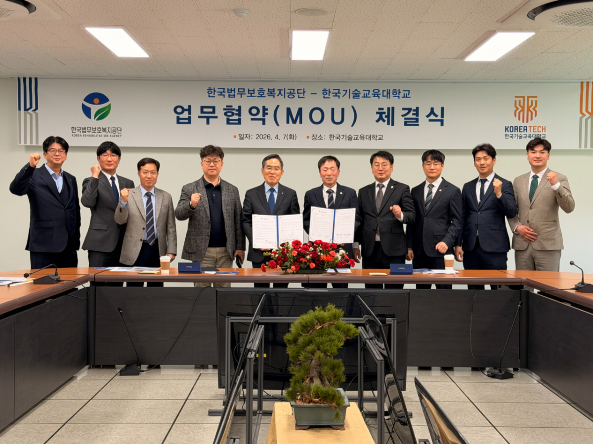 한국기술교육대학교(이하 한기대)가 7일 한국법무보호복지공단(이하 복지공단)과 온라인 직업교육 활성화 및 AI 교육 지원을 위한 업무협약(MOU)을 체결했다.