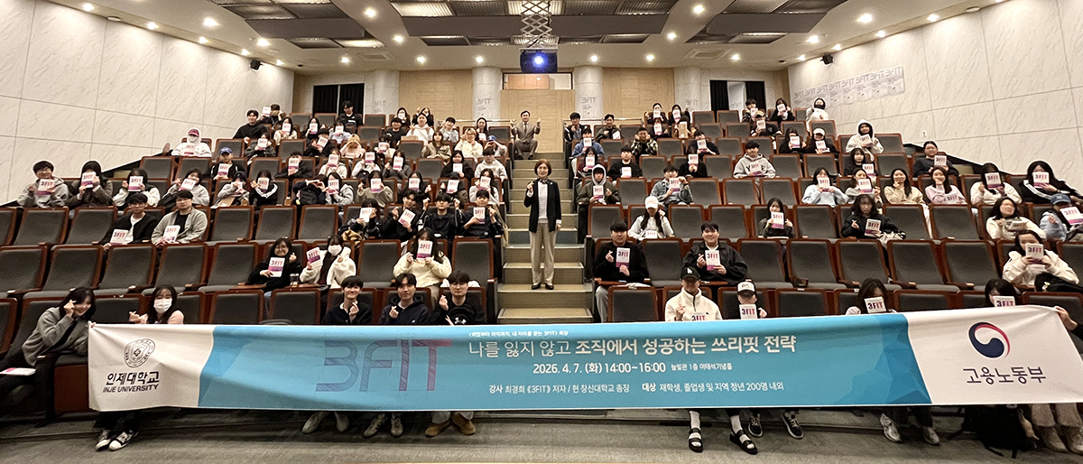 인제대학교 대학일자리플러스센터가 지난 7일 교내에서 김해고용센터 등 지역 고용 서비스 기관과 함께 '취업부터 이직까지, 내 자리를 찾는 3FIT 특강'을 열었다고 8일 밝혔다.