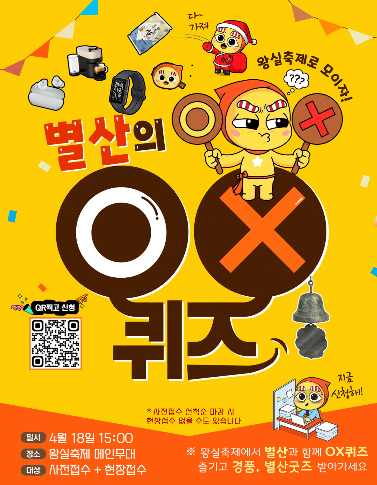 시는 '제9회 회암사지 왕실축제' 기간인 오는 18일 메인무대에서 '정답 탁! 청동금탁! 별산 OX퀴즈'를 진행한다. 참가자 400명은 사전 모집한다.