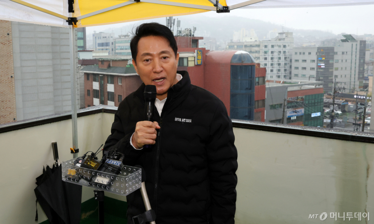 오 시장은 "재개발·재건축에 진심이라면 지금 당장 자신을 추켜세웠던 이재명 대통령을 찾아가 무차별적인 부동산 대출 규제부터 철회하라고 요구하라"며 "현재 서울의 정비사업을 가로막고 있는 가장 큰 걸림돌은 묻지도 따져보지도 않고 적용되고 있는 이재명 정부의 과도한 규제"라고 주장했다.