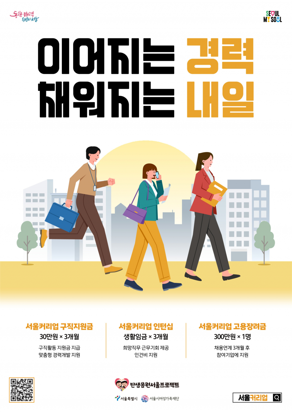 서울시는 구직지원금과 인턴십을 통해 육아로 경력이 중단된 양육자의 재취업을 돕는 '서울커리업 프로젝트' 인턴십 참여자를 모집한다고 14일 밝혔다.