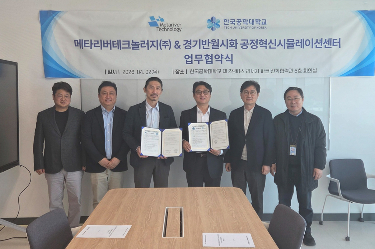 한국공학대학교 공정혁신시뮬레이션센터(이하 센터)가 지난 2일 제2캠퍼스 TU리서치파크 산학협력관에서 메타리버테크놀러지㈜와 중소기업 기술개발 지원 및 산업경쟁력 강화를 위한 업무협약을 체결했다고 14일 밝혔다.