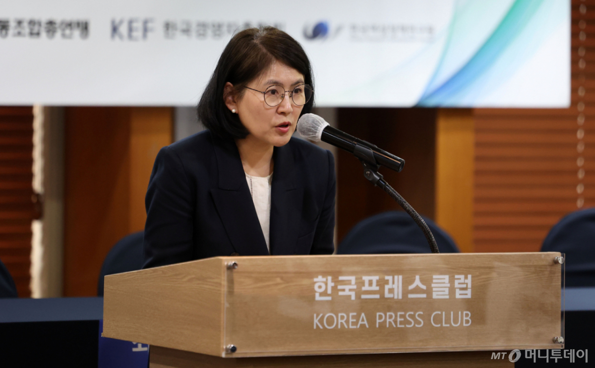 ![[서울=뉴시스] 김선웅 기자 = 김종숙 한국여성정책연구원장이 23일 서울 중구 프레스센터에서 한국노동조합총연맹·한국경영자총협회·한국여성정책연구원이 공동 주최한 저출생 대응을 위한 노사협력 방안 모색 공동토론회에서 개회사를 하고 있다. 2025.04.23. mangusta@newsis.com /사진=김선웅](https://thumb.mt.co.kr/cdn-cgi/image/f=avif/21/2026/04/2026041413491070307_1.jpg)