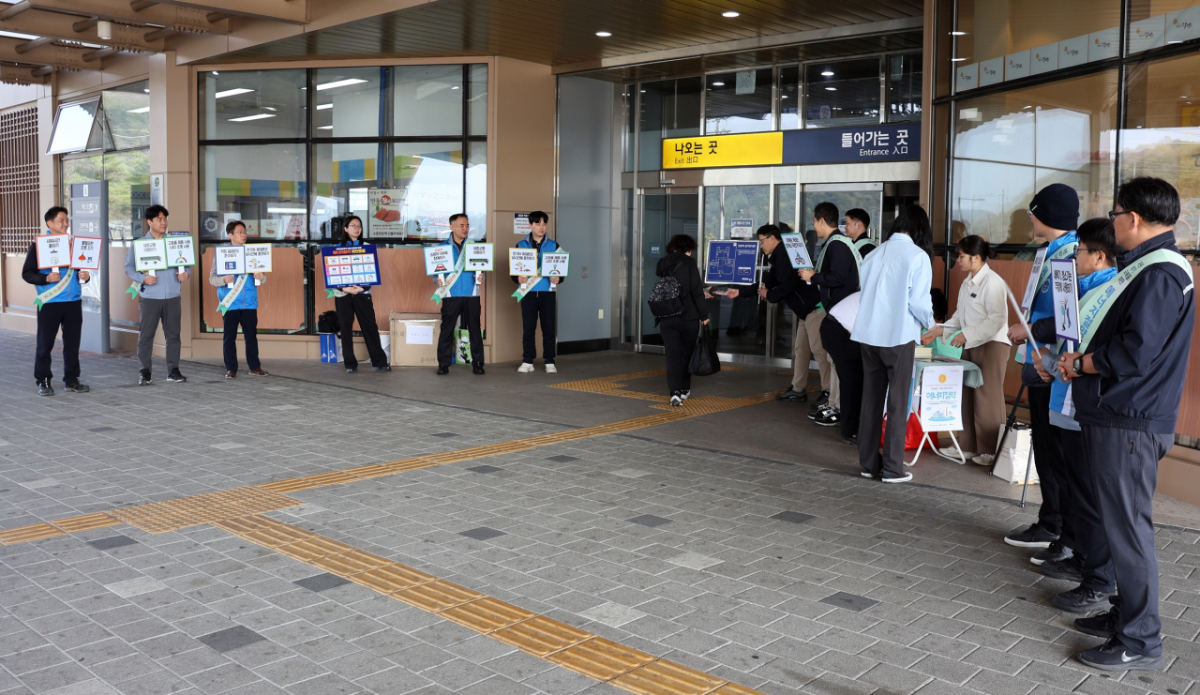 김상만 안동빛드림본부장과 직원이 안동역 등에서 시민에게 △승용차 5부제 참여 △대중교통 이용 △실내 적정온도 유지 등 '에너지절약 국민행동 요령'이 담긴 홍보물 등을 나줘주고 에너지절약 동참을 호소했다.