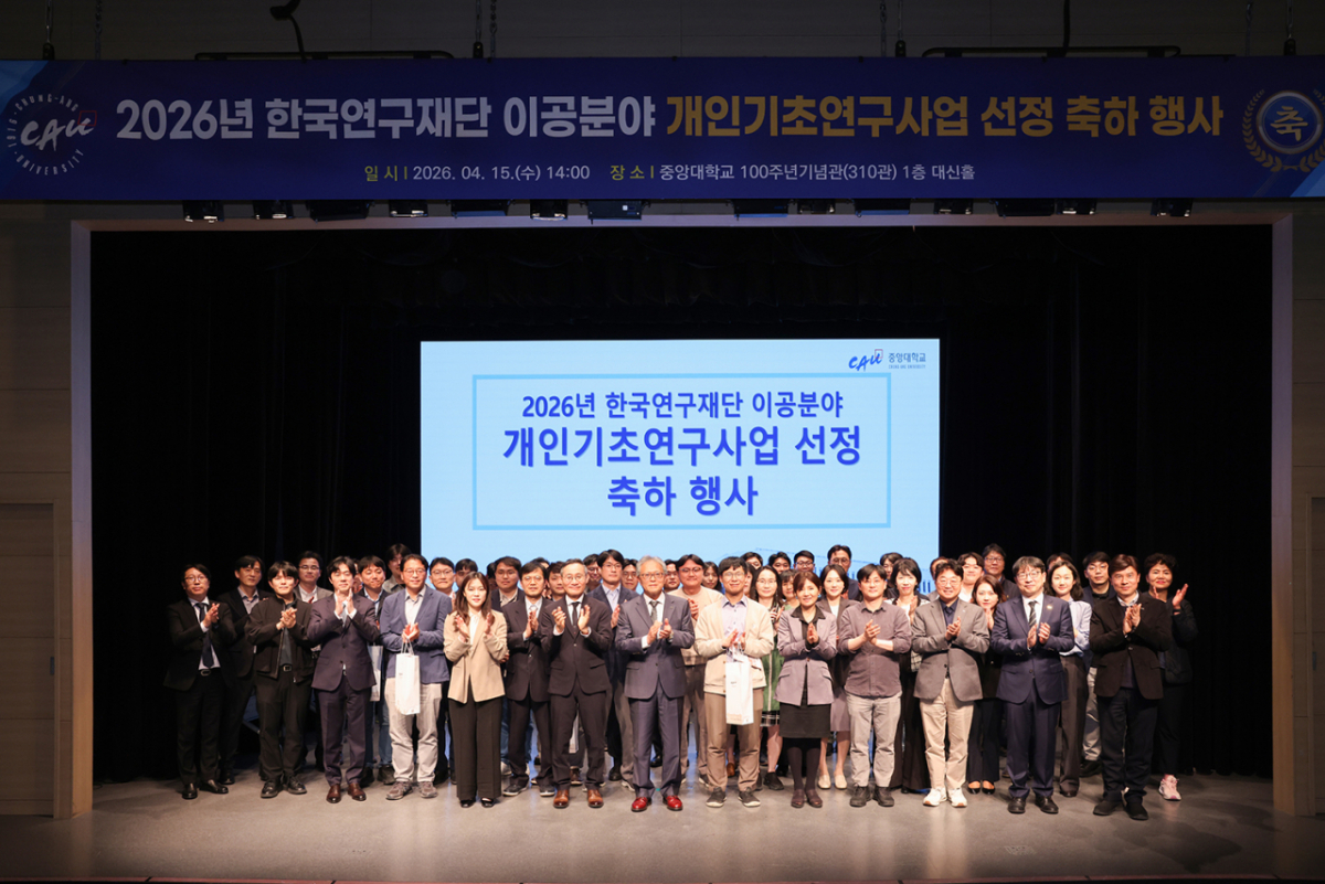 중앙대학교가 산학협력단 주관으로 지난 15일 310관 대신홀에서 '2026년 한국연구재단 이공분야 개인기초연구사업'에 선정된 교원들을 격려하고 성과를 공유하기 위한 축하 행사를 성황리에 개최했다고 16일 밝혔다.