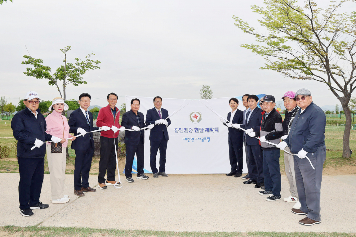 대산면 파크골프장은 지난해 11월 대한파크골프협회의 현장 실사와 심사를 거쳐 공인인증(2구장 36홀 규모)을 획득했다. 인증은 2028년 11월까지이다.