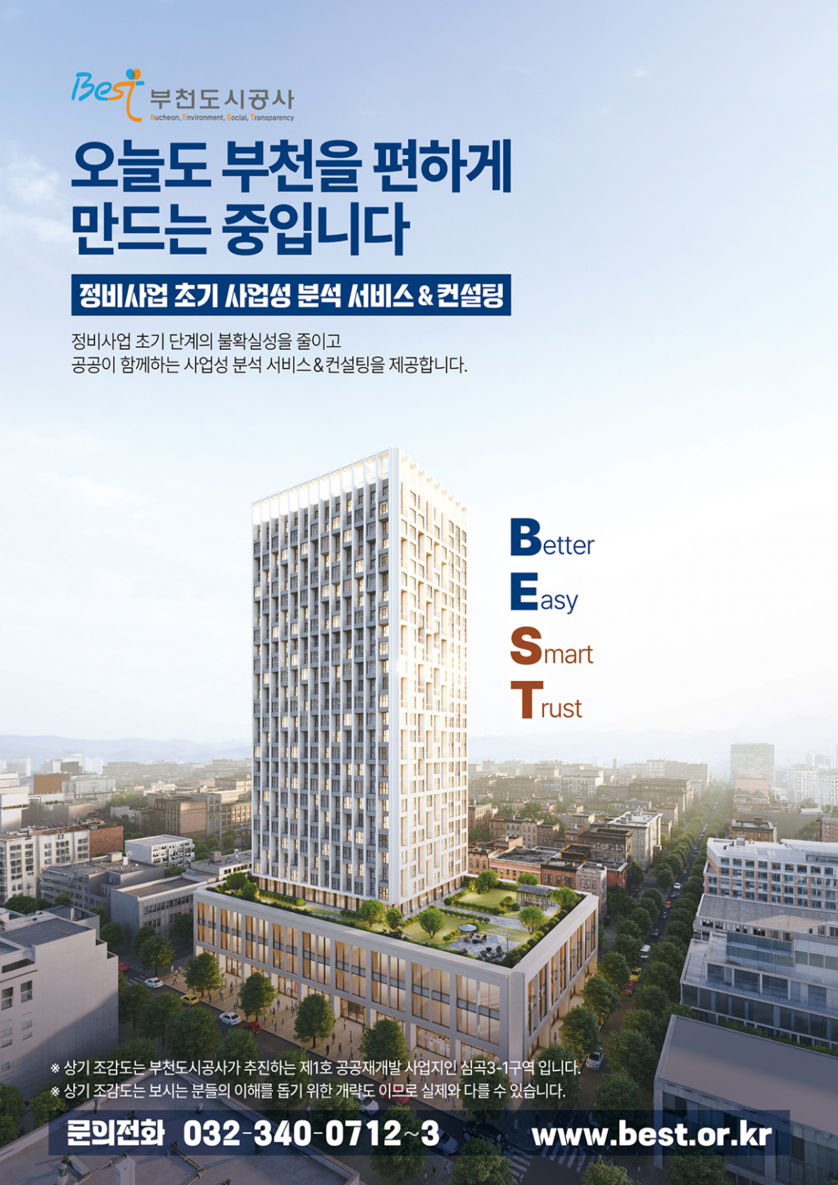 대상은 부천시 내 재개발·재건축·소규모 정비사업을 구상 중인 토지등소유자다. 조합설립추진위원회나 조합이 이미 구성된 구역은 제외된다. 모든 서비스는 무료로 제공된다.