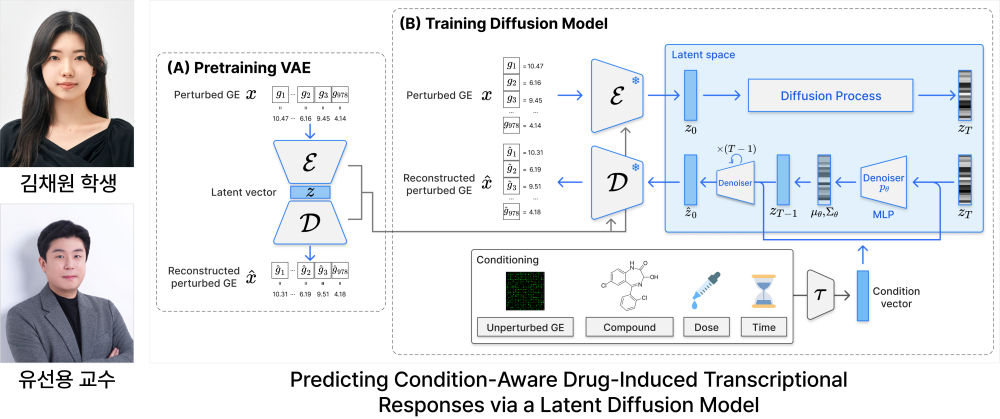 해당 연구는 특정 약물이 세포에 처리됐을 때 나타나는 유전자 발현 변화를 AI로 예측하는 기술이다. 연구팀은 변분 오토인코더(VAE)와 확산 모델(Diffusion Model)을 결합한 '잠재 확산 모델'(Latent Diffusion Model) 기반 프레임워크를 제안했다.