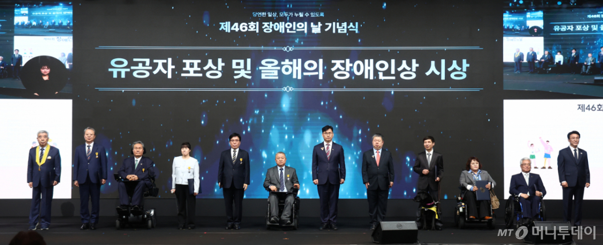 보건복지부와 한국장애인개발원은 20일 서울 워커힐호텔에서 "당연한 일상, 모두가 누릴수 있도록'을 슬로건으로 '제46회 장애인의 날 기념식'을 개최했다. 이번 슬로건은 장애인을 복지의 수혜자가 아닌 권리의 주체로 바라보는 사회적 인식 전환 등을 고려해 선정됐다.