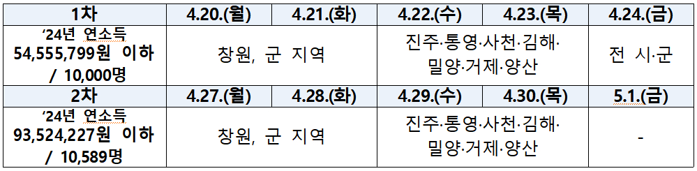 오는 27일부터 28일까지는 창원시와 10개 군 지역을 대상으로 2차 추가모집을 진행한다. 대상은 2024년 연소득 9352만4227원 이하이다. 진주시 등 7개 시를 대상으로 한 2차 추가모집은 오는 29일부터 30일 신청을 접수한다.