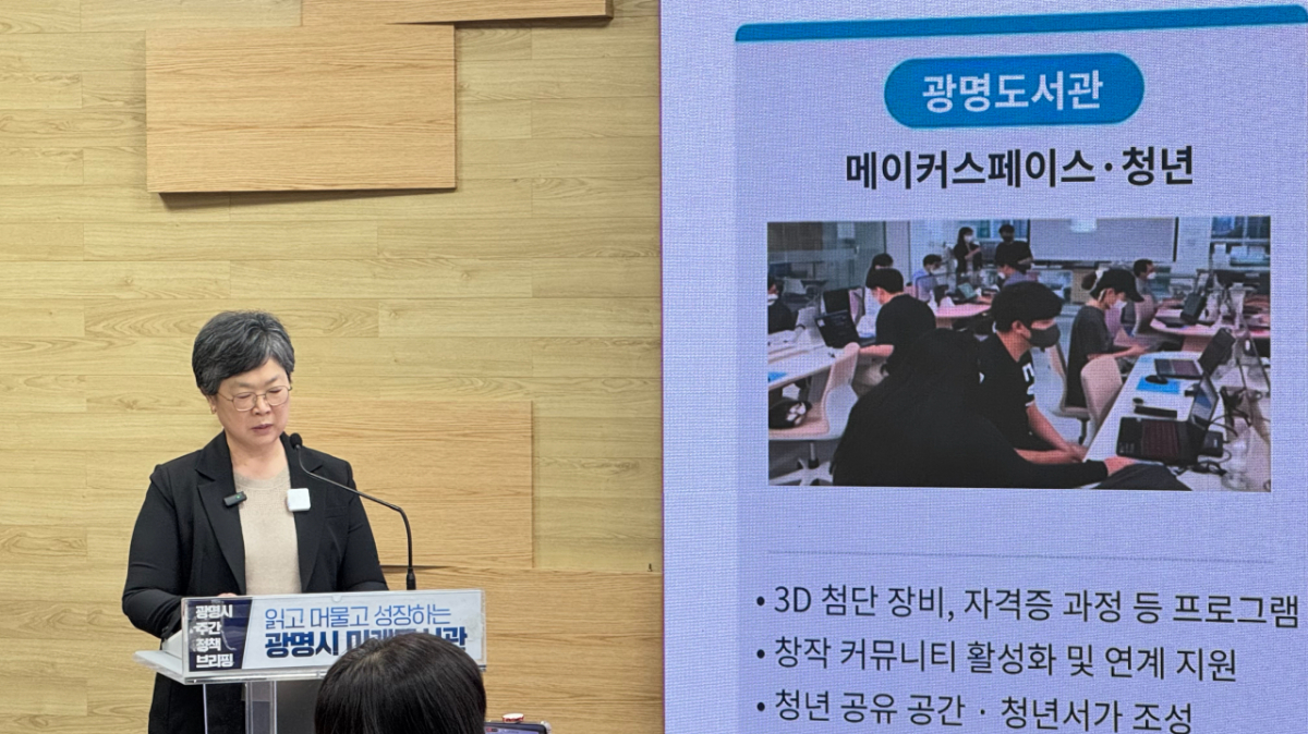 시는 21일 정책브리핑을 열고 도서관을 시민 삶 중심의 복합문화공간으로 확장하는 '광명형 도서관 정책'을 추진한다고 밝혔다. 공간 혁신, 특성화 프로그램, 출판 지원, 지역 상생 정책을 하나로 묶어 '성장과 연결'을 지원하는 통합 시스템을 구축한다.