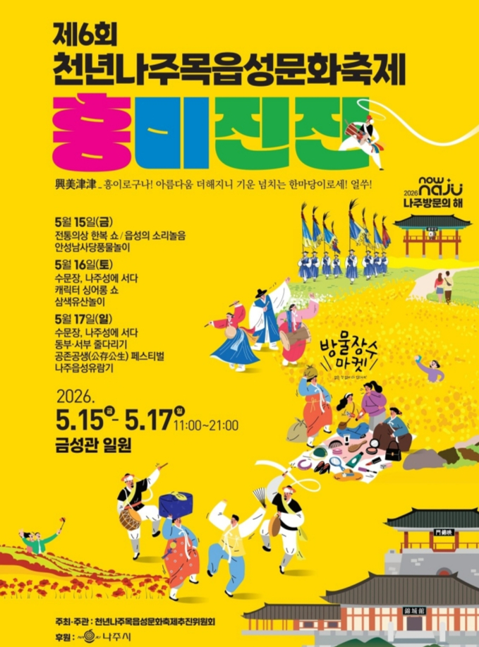전남 나주시가 '2026 나주방문의 해'를 맞아 전통과 체험, 가족형 콘텐츠를 결합한 '제6회 천년나주목읍성문화축제'를 다음달 15일부터 17일까지 금성관 일원에서 개최한다고 22일 밝혔다.