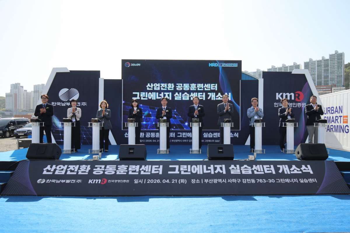 한국남부발전이 한국경영인증원(KMR)과 부산 사하구 감천동 부산빛드림본부에 에너지 공기업 중 처음으로 '산업전환 공동훈련센터–그린에너지 실습센터'를 개소했다고 22일 밝혔다.