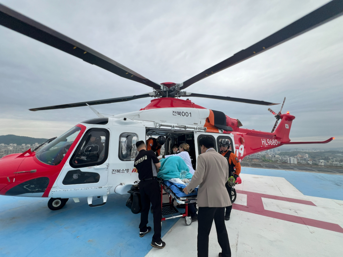 현장에 도착한 구급대는 즉시 병원 선정에 나섰지만, 수용 가능한 의료기관을 찾는 데 어려움을 겪었다. 전북 구급상황관리센터는 인근은 물론 수도권까지 범위를 넓혀 총 14개 병원에 수용 가능 여부를 확인한 끝에 인천의 가천대 길병원으로부터 수용 확답을 받았다. 이후 전북 1호 소방헬기가 약 360㎞를 비행해 산모를 신속히 이송했다. 산모는 현재 안정을 취하며 치료를 받고 있다.