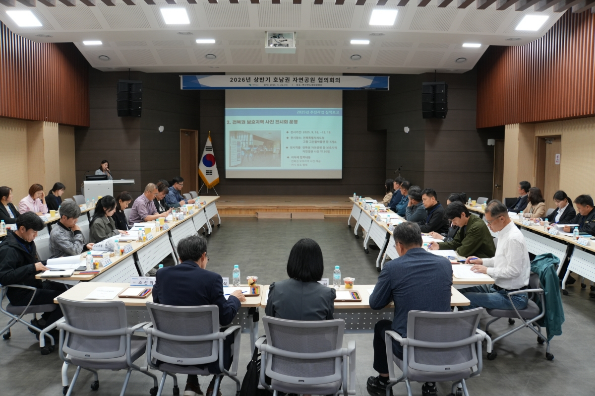 이번 회의는 호남권 자연공원 간 정책을 공유하고, 협력사업을 발굴해 체계적인 공원 관리와 네트워크를 활성화하기 위해 마련됐다. 지난해에 이어 2번째로 열려 국립·도립·군립공원 관리자들이 현장관리 경험을 나누고, 자연공원 현안을 논의했다.