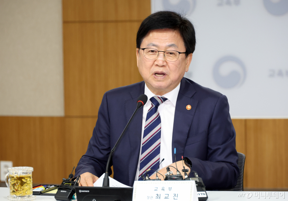 ![[세종=뉴시스] 강종민 기자 = 최교진 교육부 장관이 10일 세종시 정부세종청사에서 열린 17개 시·도 부교육감 회의에서 발언하고 있다. 2026.04.10. /사진=강종민](https://thumb.mt.co.kr/cdn-cgi/image/f=avif/21/2026/04/2026042314221657396_1.jpg)