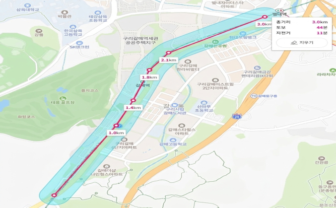 경기 구리시는 수도권 광역급행철도 GTX-B 개통 이후 경춘선 선로의 철도 운행 횟수가 많이 늘어날 것으로 예상됨에 따라, 갈매동 일대 경춘선 선로 주변 약 3km 구간을 '소음·진동관리법' 제27조에 따라 4월 22일부로 교통소음(철도) 관리지역으로 지정한다고 23일 밝혔다.