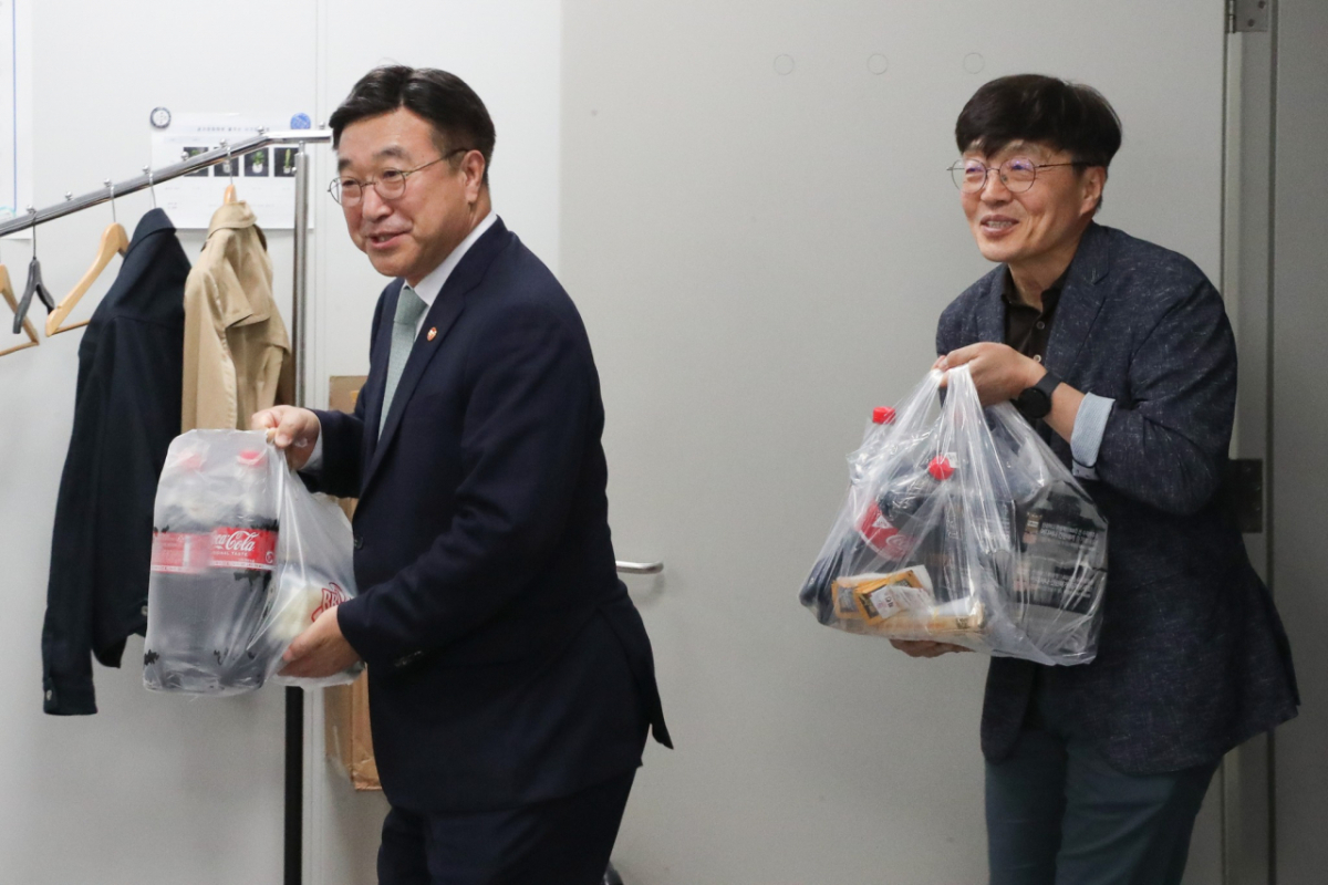 행안부 내부 반응도 긍정적이다. 한 직원은 "아무래도 장관이 일정을 소화하다 보면 직접 볼 일이 많지 않아 TV에서만 보던 존재로 멀게 느껴졌다"면서 "(윤 장관은) 연례적인 사무실 사열식 인사가 아니라 먹을 것을 들고 찾아오는 큰삼촌 같은 느낌이라 좋았다"고 말했다.