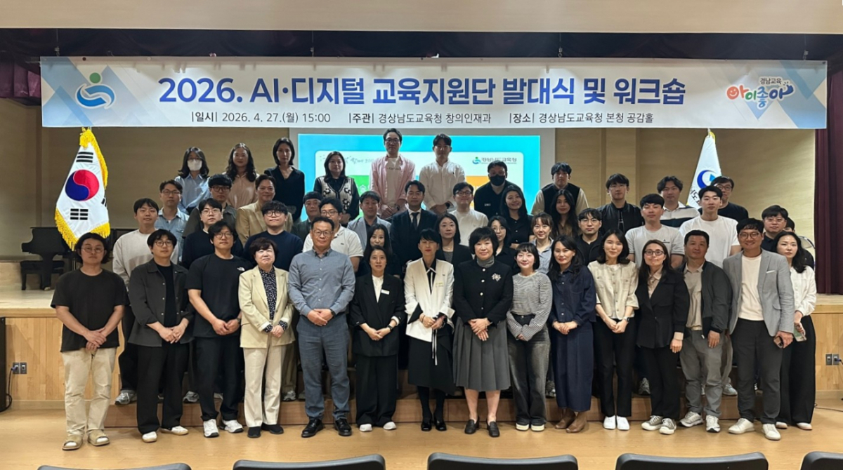 경남교육청이 27일 인공지능(AI)·디지털 교육지원단 발대식 및 워크숍을 열고 경남형 AI·디지털 교육 확산 및 안착에 나섰다.