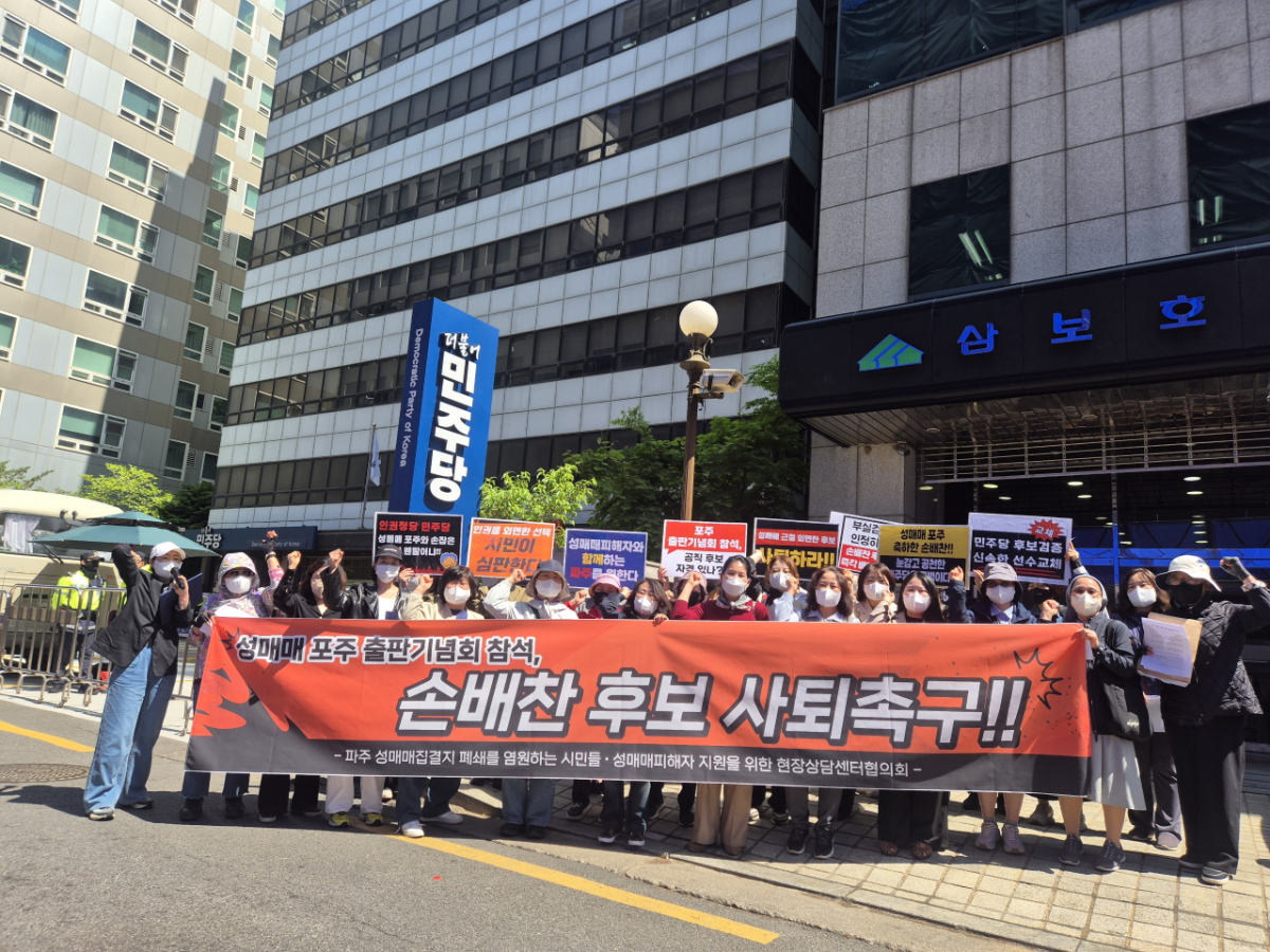 성매매 피해자 지원 단체는 별도 입장문을 통해 "성매매는 구조적 폭력에 기반한 인권 문제"라며 "이를 정당화하거나 옹호하는 발언은 피해자의 권리를 부정하는 것"이라고 지적했다. 이어 더불어민주당에 대해 "해당 후보에 대한 공천 배제 등 책임 있는 조치를 취해야 한다"고 요구했다.