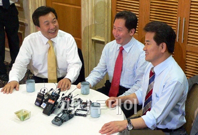 세사람은 김 전 의장의 주선으로 이날 오전 여의도의 한 호텔서 만났다. 이들은 지난 25일 손 전 지사의 범여권 합류 소식이 알려진 뒤 두사람씩 연쇄 회동을 갖다 이날 3자회동까지 이뤄냈다.