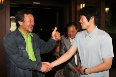 손 전 지사는 이날 경기도 수원의 한 식당에서 박 선수를 만나 발목부상으로 재활중인 박 선수의 쾌유와 내년 시즌 활약을 당부했다.