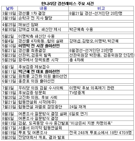 이명박 박근혜 원희룡 홍준표 후보 등 경선후보 4명과 당 지도부가 쏟아낸 말의 성찬. '코스'별로 나눠보면 더 맛있다.