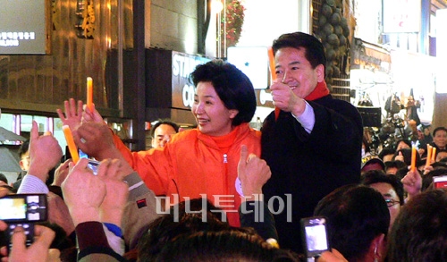 특히 명동은 정 후보로선 잊을 수 없는 곳. 5년 전 노무현 후보가 이 곳에서 마지막 연설을 펼쳤고 다음날 당선됐다.