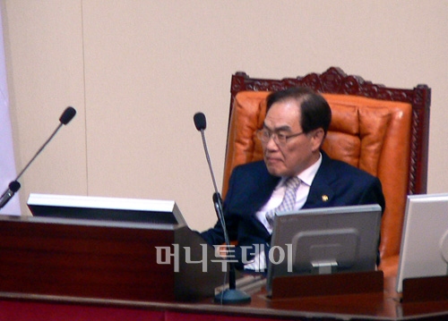3시경 나타난 안상수 한나라당 원내대표는 텅 빈 본회의장을 보고 "이렇게 정족수가 안 돼서야…"라며 임채정 국회의장 앞으로 가 양해를 구했다.