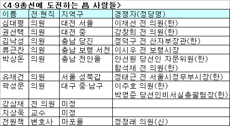 또 선진당의 주요 인사들은 대부분 현실정치를 얼마간 떠나 있던 인물들이어서 예비후보들의 지역구 선정부터 새로 시작해야 하는 상황이다. 총선 출발선에 서 있는 거나 다름 없다.