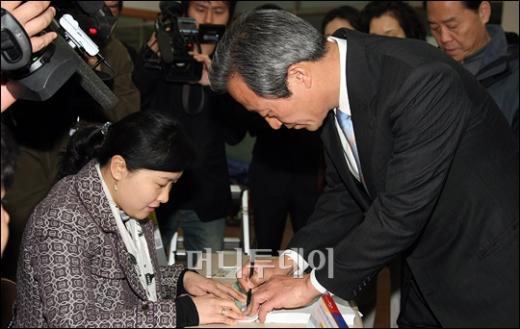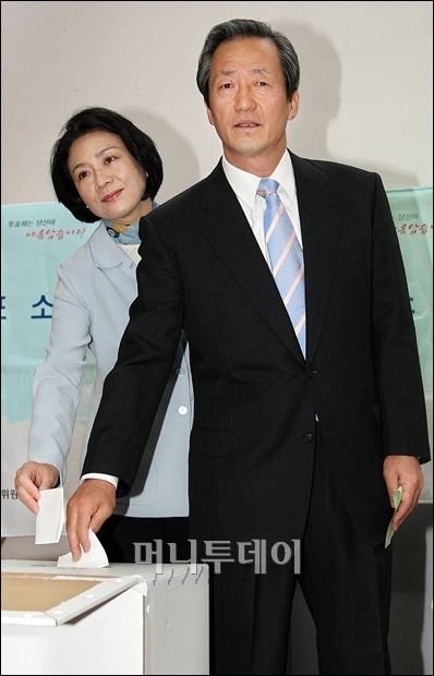 2008 제18대 국회의원 총선거 투표가 시작된 9일 오전 서울 동작구 사당 3동 투표소에서 한나라당 정몽준 동작을 후보가 부인 김영명씨와 함께 소중한 한표를 행사하고 있다. 독자들의 PICK! 홍서범 전 며느리 "아들 외도, 대중에 사과? 저에게 하시라" 분노 월 700만원 벌어도..."생활비 30만원, 한국인 남편 짠돌이" 화사, 속옷이 다 보여...과감한 드레스 연출에 '깜짝' 이하이 "도끼, 하나뿐인 내 남자" 열애 인정…"두 사람 지금 미국에"