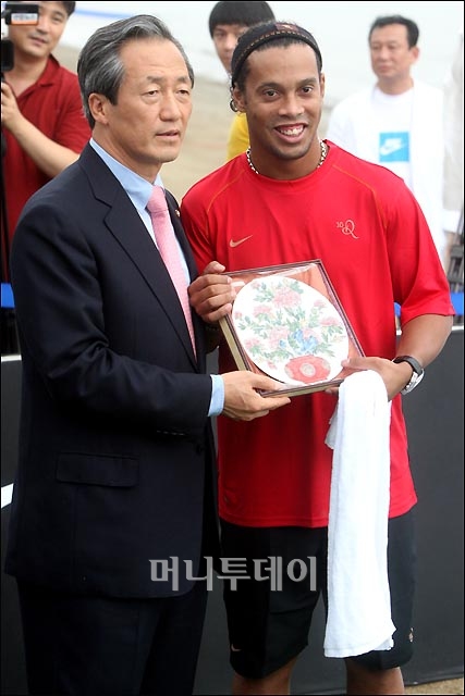 정몽준 의원이 빠듯한 일정속에 2일 오후 서울 여의도 한강지구에서 열린 세계적인 축구스타 호나우지뉴와 유소년들과의 미니 풋살경기에 참석했다. 정몽준 의원은 대한축구협회장직을 유지하고 있으며 3일 한나라당 당권을 좌우하는 전당대회를 앞두고 있다. 독자들의 PICK! 홍서범 전 며느리 "아들 외도, 대중에 사과? 저에게 하시라" 분노 월 700만원 벌어도..."생활비 30만원, 한국인 남편 짠돌이" 화사, 속옷이 다 보여...과감한 드레스 연출에 '깜짝' 이하이 "도끼, 하나뿐인 내 남자" 열애 인정…"두 사람 지금 미국에"