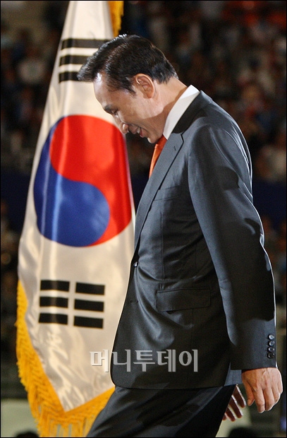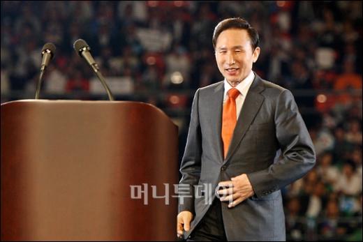 3일 오전 서울 올림픽공원 체조경기장에서 열린 한나라당 제10차 전당대회에 참석한 이명박 대통령이 축사를 하기위해 단상에 올라 손을 흔들고 있다. 독자들의 PICK! 홍서범 전 며느리 "아들 외도, 대중에 사과? 저에게 하시라" 분노 월 700만원 벌어도..."생활비 30만원, 한국인 남편 짠돌이" 화사, 속옷이 다 보여...과감한 드레스 연출에 '깜짝' 이하이 "도끼, 하나뿐인 내 남자" 열애 인정…"두 사람 지금 미국에"
