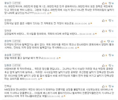 ☞ "한나라당과 이번 정부, 다 지들 맘 대로네."(voyzer2000, 네이버)
