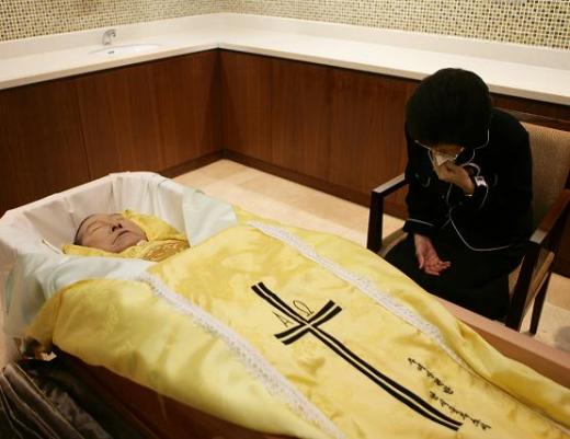 고 김대중 전 대통령의 서거 사흘째를 맞는 20일 오후 1시30분 연세대 신촌 세브란스병원에서 입관식이 천주교의식에 따라 엄수되고 있다.